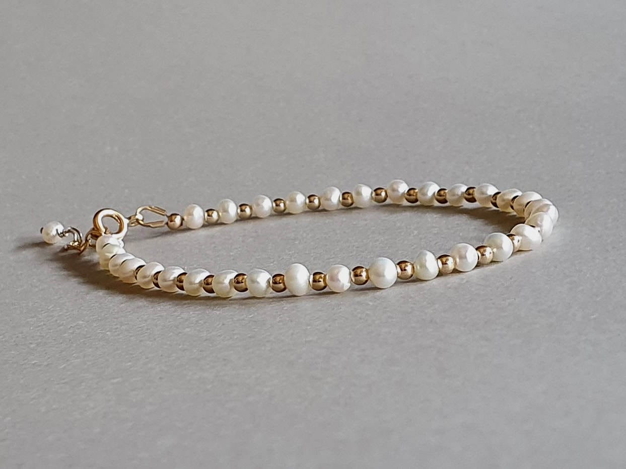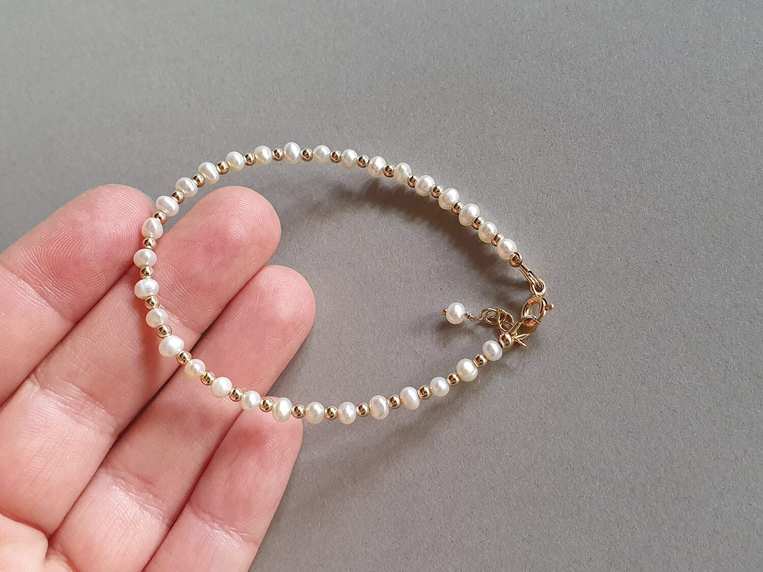 Brățară realizată din aur filat și perle de cultură. Mai multe informații legate de aurul filat găsiți aici. Disponibilă și în varianta cu argint. Perlele pot fi înlocuite cu alte pietre semiprețioase. În acest sens, vă rugăm să completați formularul de comandă personalizată. Prețul final poate să difere în funcție de tipul de pietre alese.