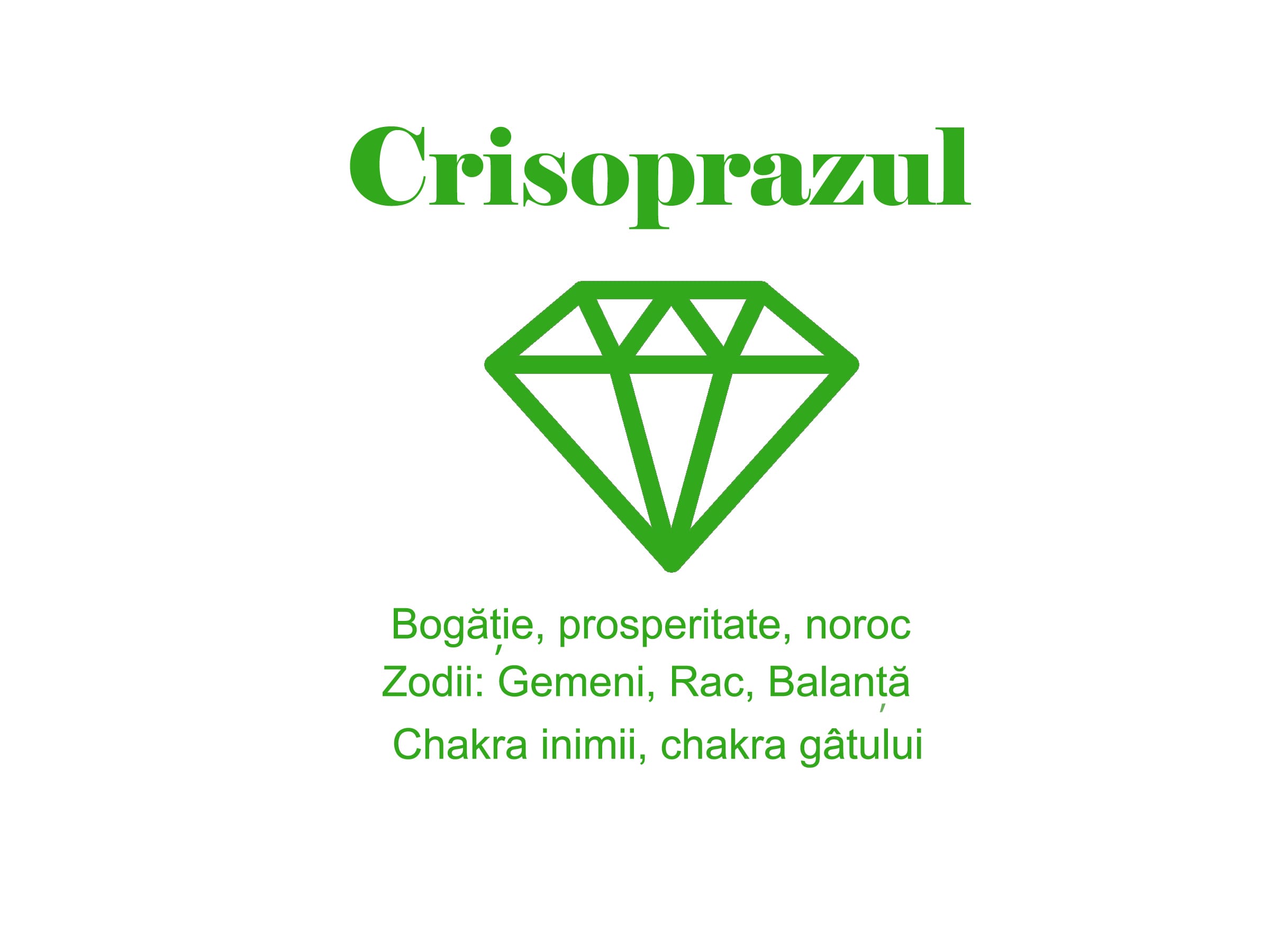 Crisoprazul este considerat o piatră a prosperității și a succesului, iar purtătorii acestei pietre sunt adesea sprijiniți să își manifeste dorințele și să își urmeze pasiunile cu încredere. Este ideal pentru cei care doresc să înfrunte provocările vieții cu calm și echilibru, ajutându-i să rămână conectați cu sinele lor autentic și să își îmbunătățească relațiile personale. Crisoprazul este o piatră valoroasă atât din punct de vedere estetic, cât și din punct de vedere spiritual, având o gamă largă de beneficii metafizice, care includ protecția emoțională, echilibrul și susținerea procesului de auto-vindecare.