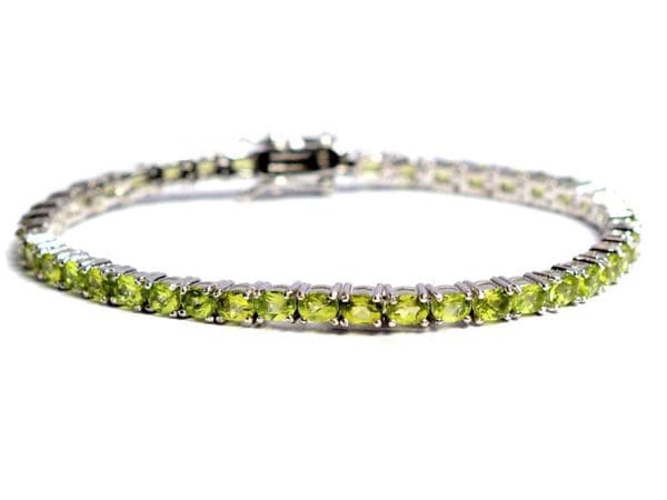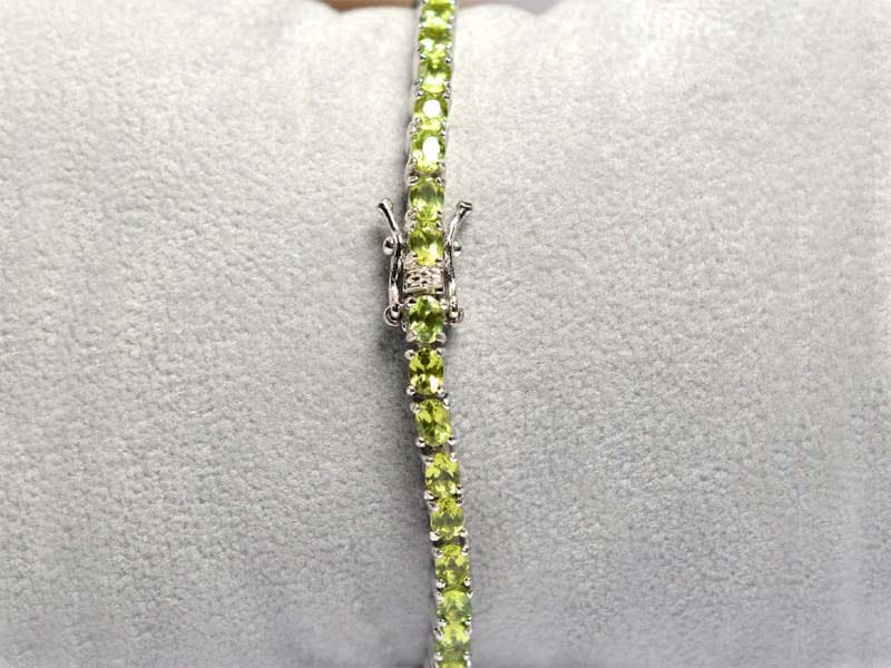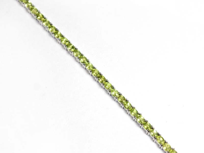 Brățară tip tennis din argint și peridot natural, netratat termic. Pietrele au dimensiunea de 4×3 mm.