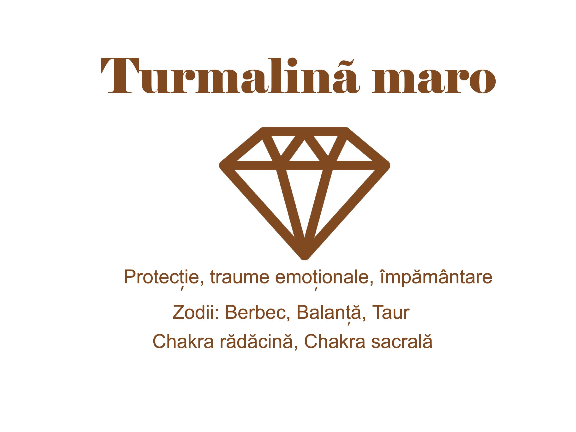 Turmalina maro este o piatră versatilă, cu proprietăți fizice și metafizice care se concentrează pe stabilitate, protecție și echilibru. Poate fi folosită pentru a sprijini procesul de vindecare emoțională, dar și pentru a atrage energie de protecție și siguranță în viața cotidiană. Dacă ești interesat de meditație sau practici energetice, aceasta poate fi un aliat excelent pentru a te ancora și a crea un spațiu sigur de dezvoltare personală. Turmalina este un mineral care prezintă proprietăți piezoelectrice, ceea ce înseamnă că poate genera o încărcătură electrică atunci când este supus unei tensiuni mecanice. Această capacitate se datorează structurii cristaline complexe și asimetrice a turmalinei, care se poate polariza sub influența unui stres mecanic. Varietățile cu un conținut mai mare de fier (cum ar fi schorl) tind să aibă o activitate piezoelectrică mai pronunțată. În unele culturi, turmalina este folosită în scopuri terapeutice. Se crede că efectul piezoelectric ar putea ajuta la îmbunătățirea circulației și la reducerea durerii prin generarea unui câmp electric ușor, care ar putea influența procesele biologice.