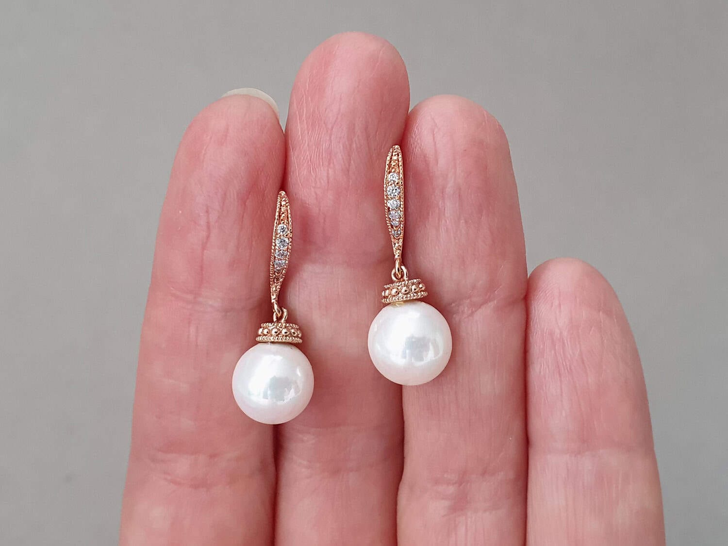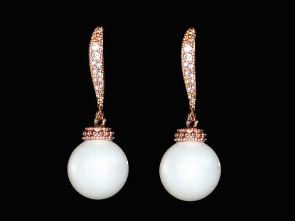 Materiale: perle sidef, metal comun placat cu aur roz, cristale zirconiu cubic