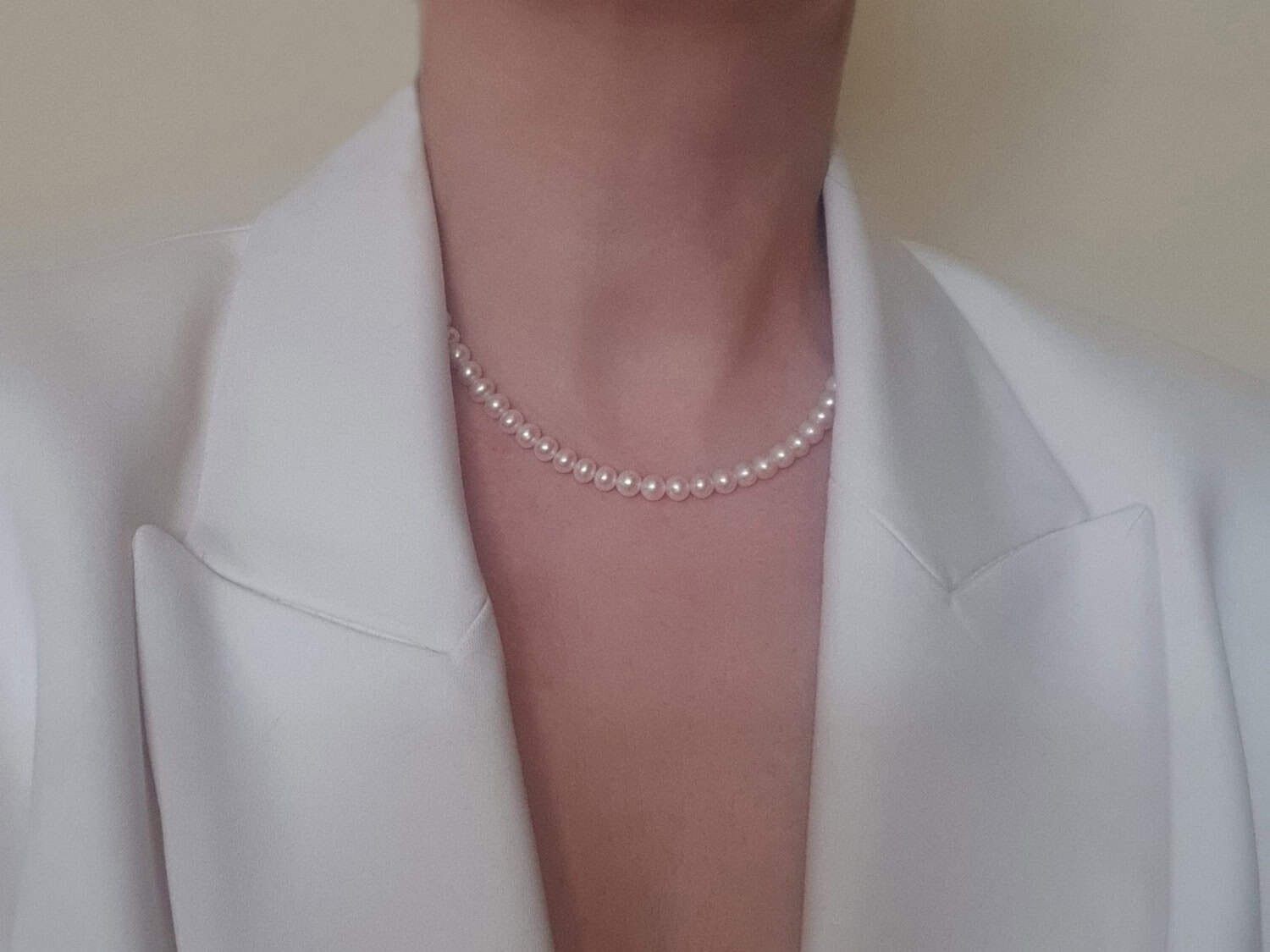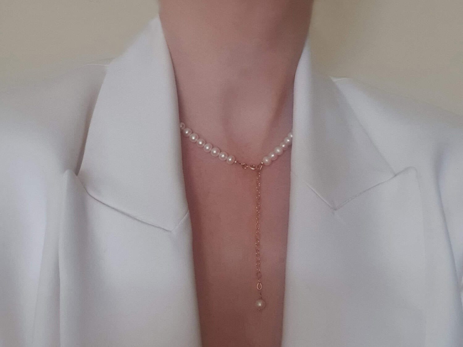 Colier realizat din perle de cultură de aproximativ 6 mm și elemente din aur filat. Lungimea colierului este variabilă; la plasarea comenzii vă rugăm selectați din meniu lungimea dorită. Disponibil și în varianta cu argint sau aur filat roz. Mai multe informații despre aurul filat găsiți aici. Mai multe informații despre perle găsiți aici.