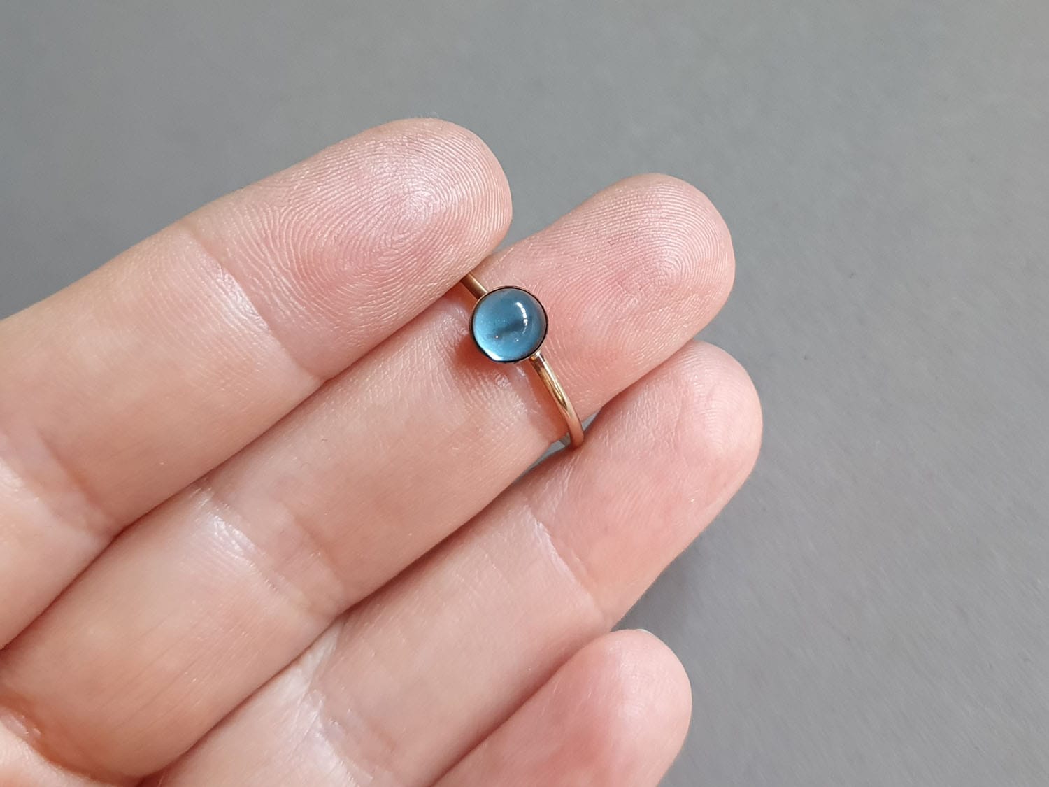 Inel realizat din aur filat, cu topaz de 6 mm, natural, tratat termic pentru intensificarea culorii. La cerere, se poate realiza un inel similar, cu alte pietre semiprețioase. În acest sens vă rugăm să ne contactați telefonic la 0745 35 35 36 sau să completați formularul de comandă personalizată disponibil aici.