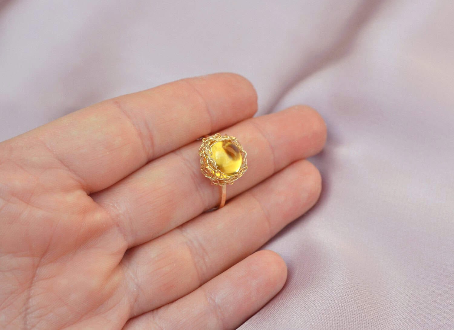 Inel realizat din aur filat, cu citrin de 10 mm natural, netratat termic. Disponibil și în varianta din argint. La cerere, se poate realiza un inel similar, cu alte pietre semiprețioase. În acest sens vă rugăm să ne contactați telefonic la 0745 35 35 36 sau să completați formularul de comandă personalizată disponibil aici.