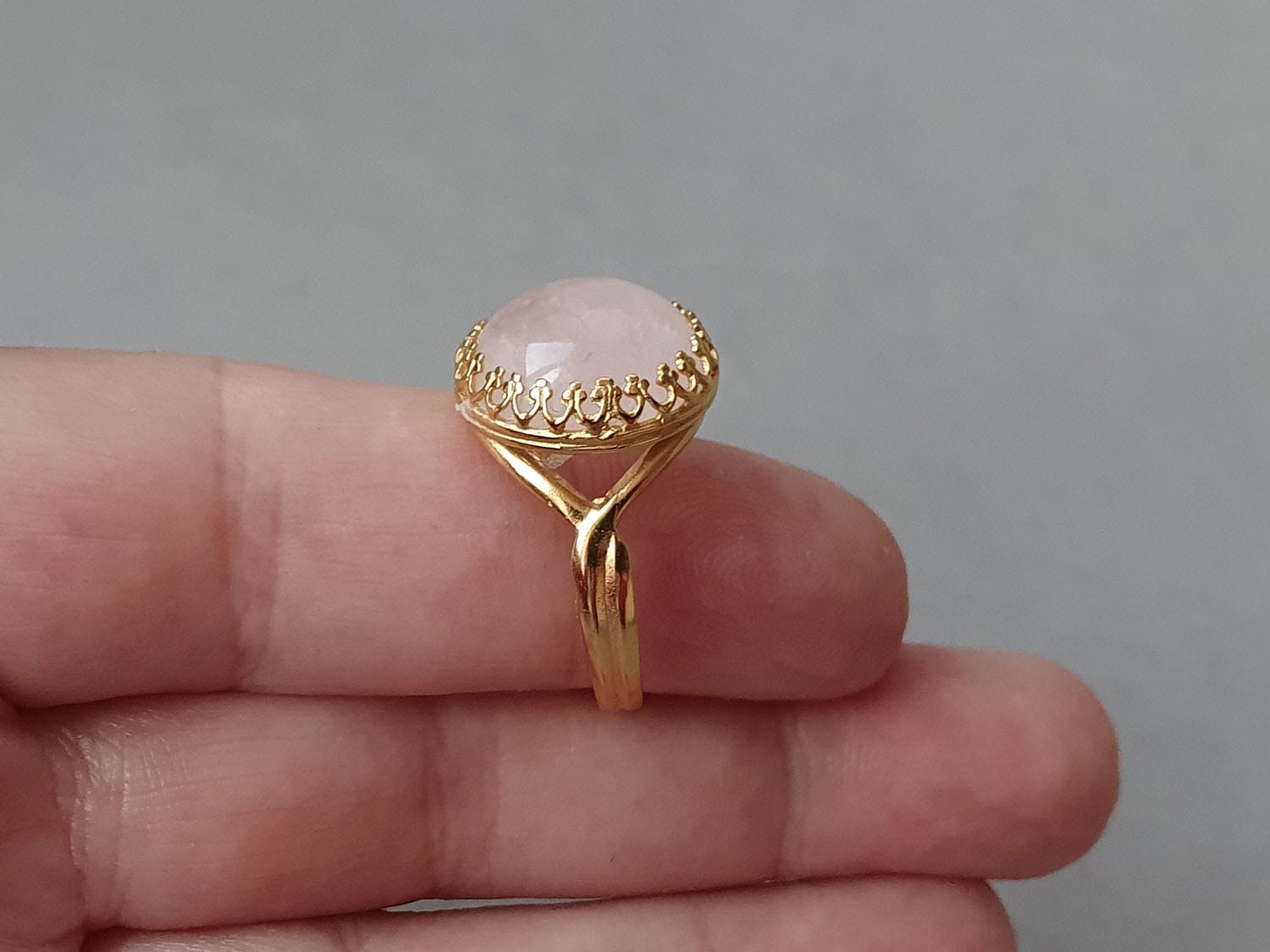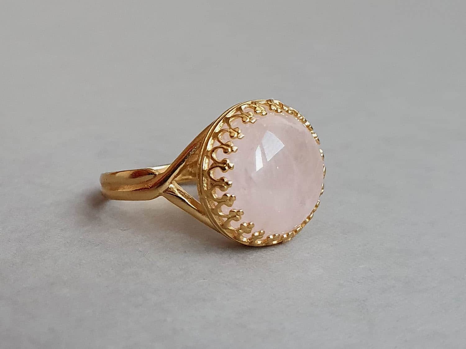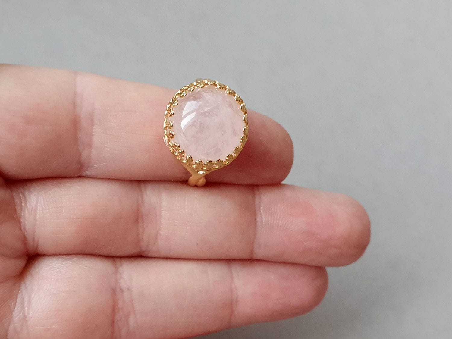 Inel reglabil (ajustabil), realizat din aur filat și cuarț roz cu diametrul de 14 mm, natural, netratat termic. Detalii despre aurul filat găsiți aici. Imaginile sunt cu titlu informativ, produsul livrat putând fi ușor diferit. Disponibil și în varianta cu argint, aici.