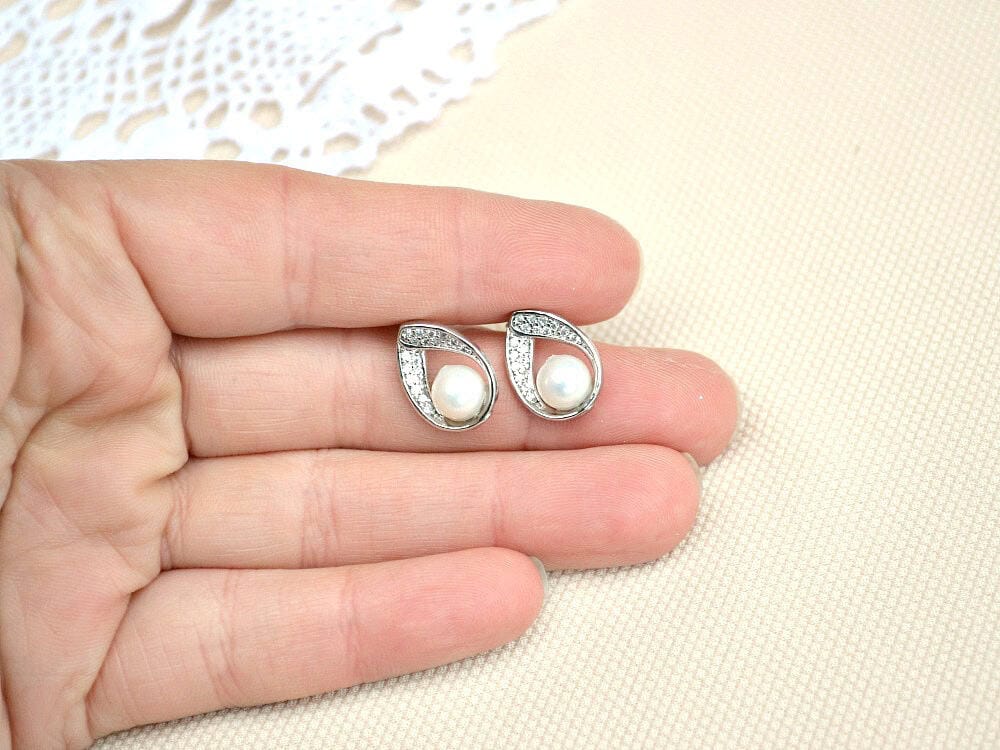 Materiale: perle sidef, cristale zirconiu cubic, metal comun placat cu rodiu, tije argint